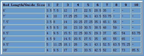 在决定包裹导环(Rod Guides)时,需要的导环数量也应当多给予留意。而导环与导环之间的距离可用相称的距离来作衡量。可用作导环位置的记号。以下的提议可供参考。